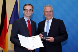Bayerns Innenminister Joachim Herrmann hat bei einer Feierstunde im Innenministerium in München acht Persönlichkeiten mit der Bayerischen Staatsmedaille für außergewöhnliche Verdienste um die Innere Sicherheit ausgezeichnet, so auch Josef Hasler, den Vorstandsvorsitzenden der VAG Verkehrs-Aktiengesellschaft Nürnberg.